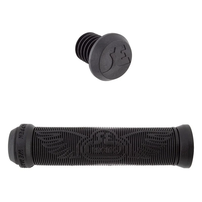 La paire de Poignées Se Bikes Wing flangeless Noires a été dessinées à partir du style classique Odi mushroom avec colerettes, d’une longueur de 135 mm et fournis avec bouchons SE de la même couleur.